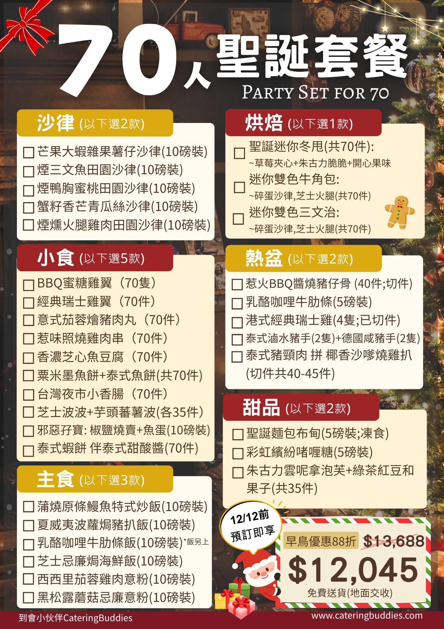 【聖誕派對】70人自選到會套餐