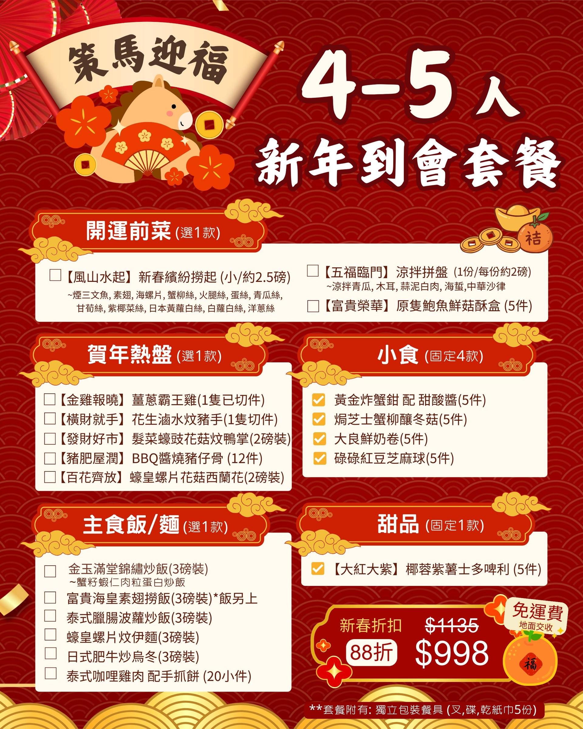 【策馬迎福】4-5人新年到會套餐